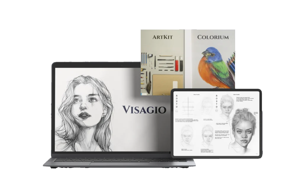 No Visagio você verá em detalhes como fazer diferentes tipos de olhos, boca e nariz, garantindo um extenso leque de conhecimento.